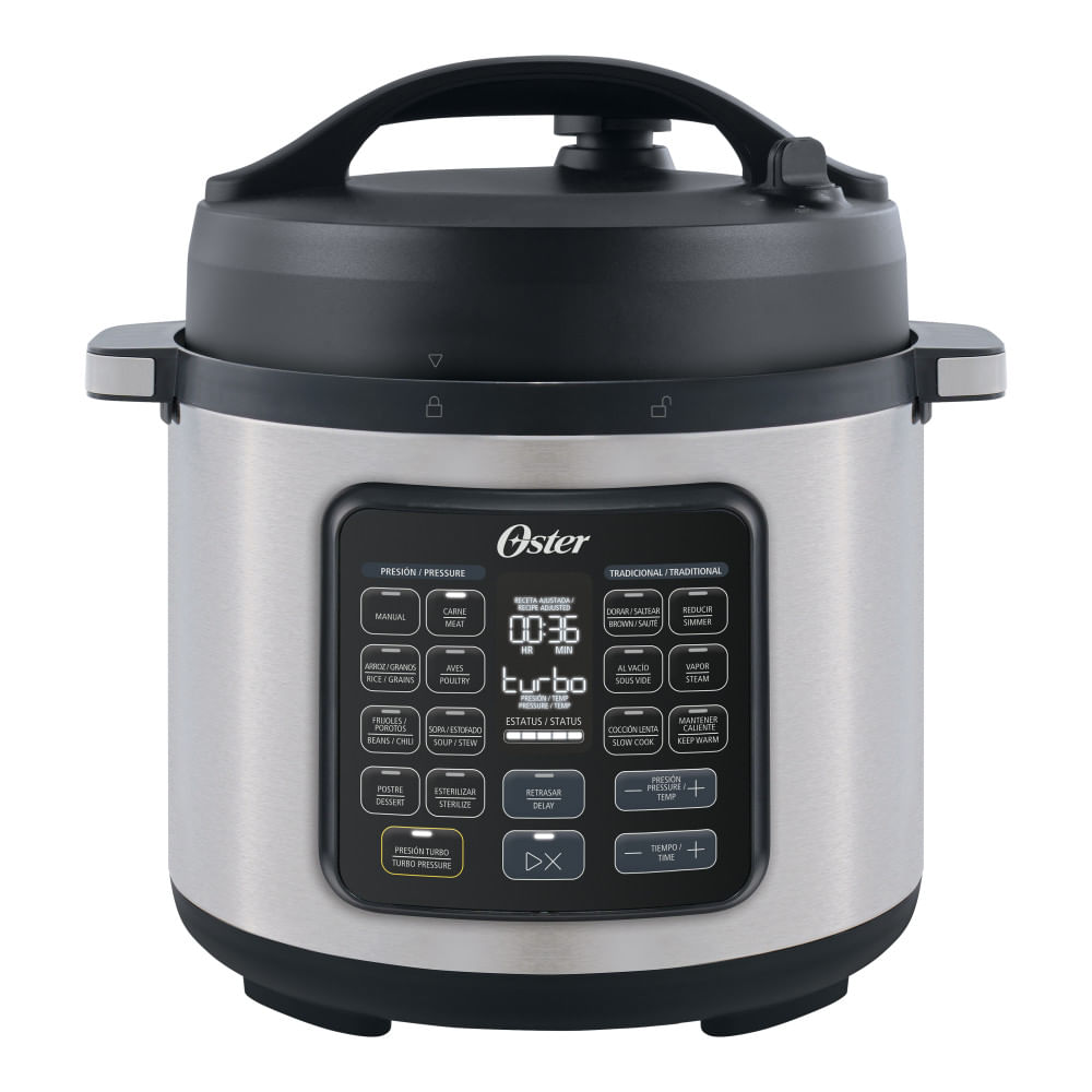 | Descripción | La Multiolla Turbo Oster cocina hasta 85% más rápido. Tiene 14 funciones predeterminadas: Manual, Carne, Arroz/Granos, Aves, Frijoles/Porotos, Sopa/Estofado, Postre, Esterilizar, Dorar/Saltear, Reducir, al Vacío, Vapor, Cocción Lenta y Mantener Caliente. Su capacidad de 5.7 L permite cocinar un pollo entero de hasta 3.6 kg. El recubrimiento Oster DiamondForce es 15 veces más fácil de limpiar, y no se agrieta, pela, astilla o descascara. Con la función Turbo comparada con los métodos tradicionales de cocción en una sola olla Medidas basadas en una unidad sin rejilla de vapor Contra recubrimiento GSCB-293V/GSCT-293V Hasta por 3 años basado en un uso simulado 2 veces por semana |